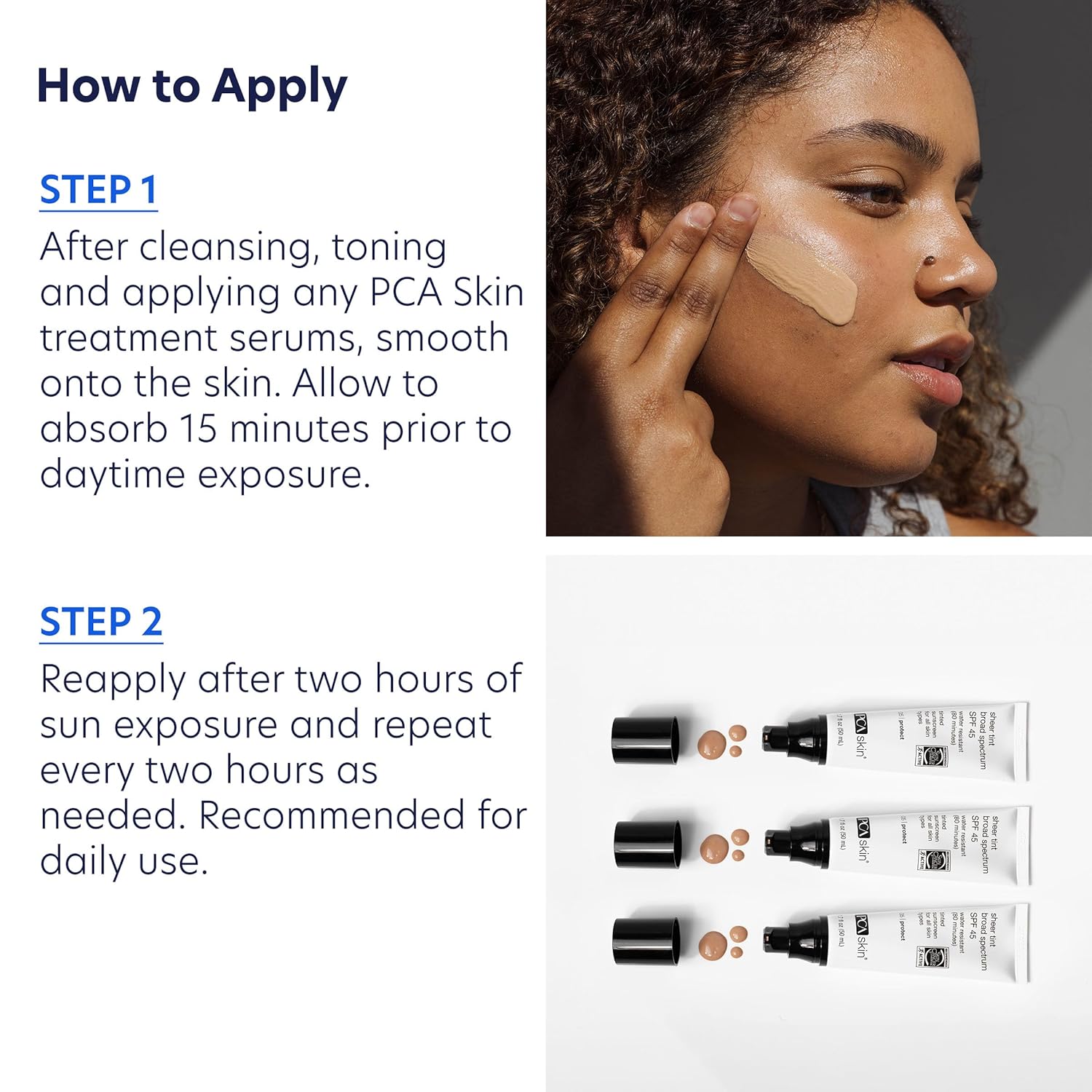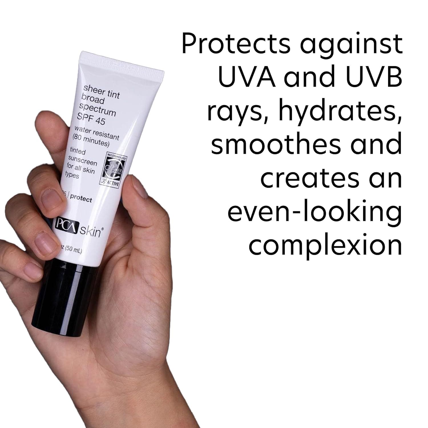 PCA Skin Sheer Tint Broad Spectrum SPF 45 is a dermatologist-developed mineral sunscreen that redefines daily sun protection. Powered by zinc oxide and titanium dioxide, this physical SPF formula shields skin from both UVA aging rays and UVB burning rays - without the white cast, greasiness, or heavy feel of traditional sunscreens.