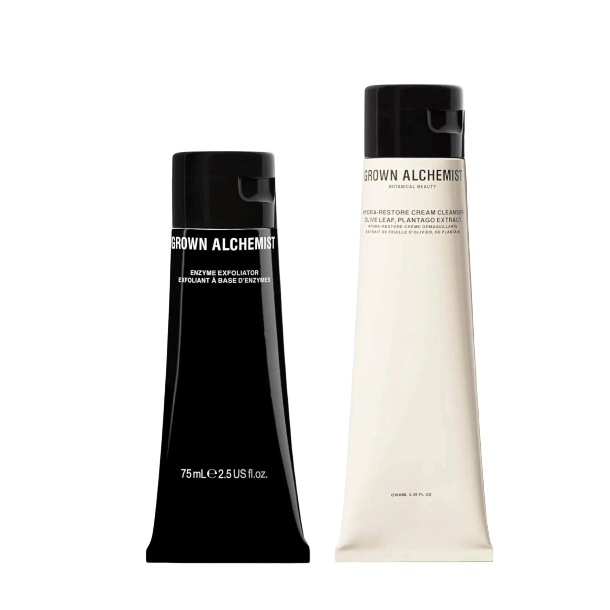 Cleanse, exfoliate, and reveal radiant skin with this refining duo from Grown Alchemist. The Power Couple pairs the Enzyme Exfoliator with the Hydra-Restore Cream Cleanser to gently remove dead skin cells while washing away makeup, impurities, and daily buildup—without stripping moisture.