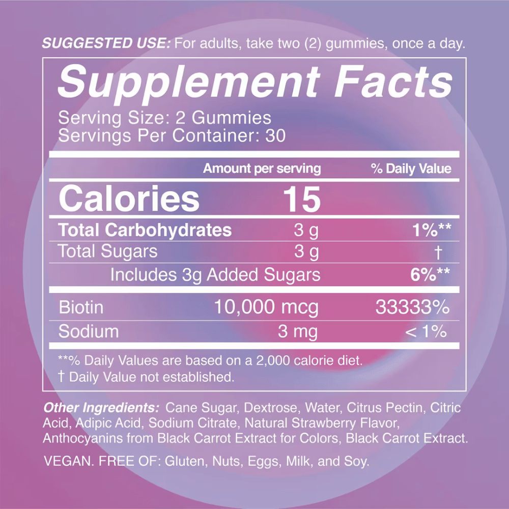 Salon-Approved IGK Extra Extra Biotin Vitamin Gummies, packed with a supercharged 10,000 MCG dose of Biotin for fuller, stronger hair. The strawberry-flavored gummies promote healthier, more vibrant hair. Say goodbye to dull, lackluster locks and hello to healthy hair in and out of the salon chair!