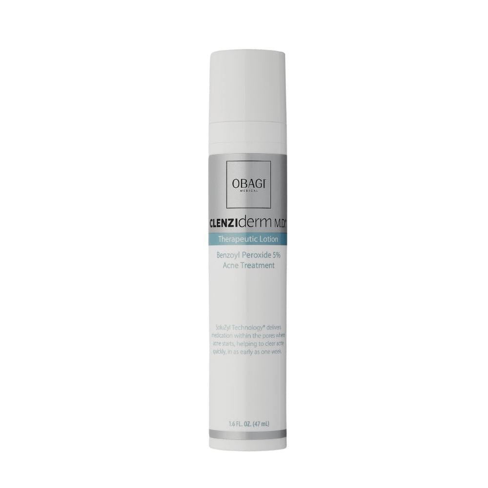 Obagi CLENZIderm M.D. Therapeutic Lotion features an advanced formula of 5% benzoyl peroxide that targets, heals and prevents breakouts for a clear and even complexion. Its creamy texture heals skin lesions quickly without causing dryness or irritation, helping your complexion get hydrated and happy.