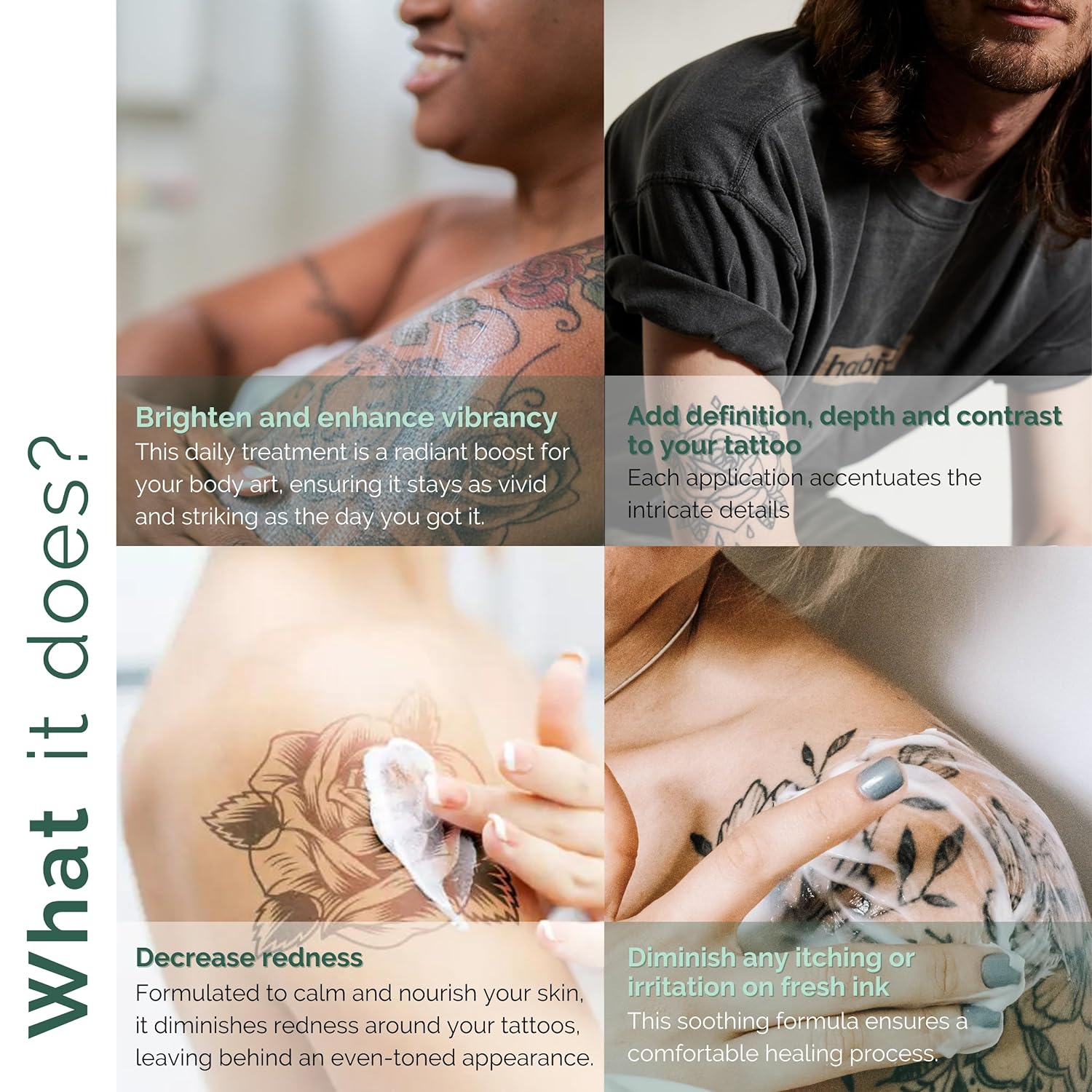 Tattoo aftercare backed by scientific ingredients designed to brighten and enhance the vibrancy and brilliance of any tattoo. Proteya’s advanced formula uses myristyl nicotinate, niacinamide, hyalauronic acid and proteolytic enzymes to help strengthen and protect skin, immediately after the procedure and decrease redness. An essential part of daily application to add definition, depth and contrast to your body art. Works quickly to diminish any itching or irritation on fresh ink, allowing your skin to heal quickly and naturally.