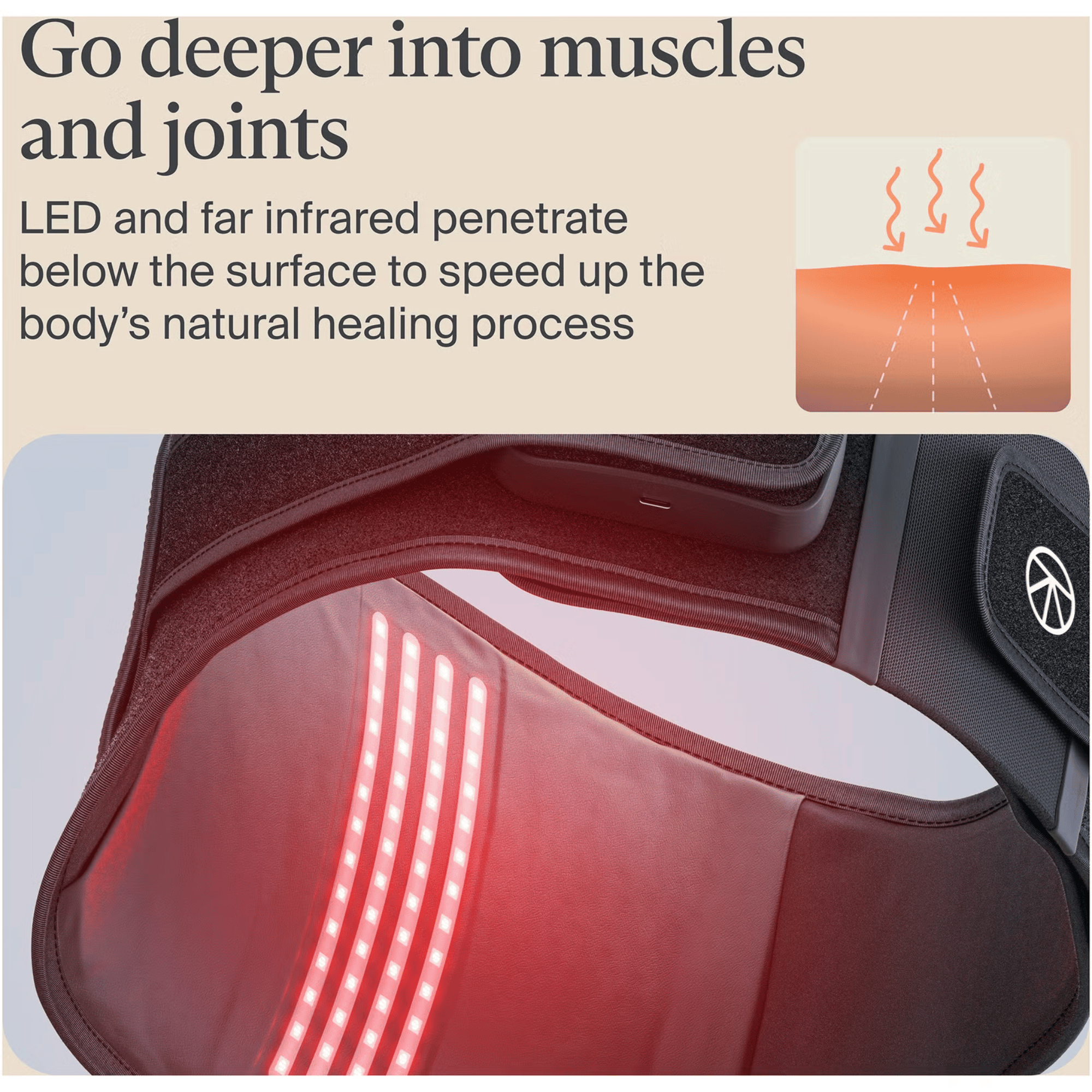 Combines LED light, soothing heat, therapeutic vibration, and adjustable compression to relieve lower back pain and tension.