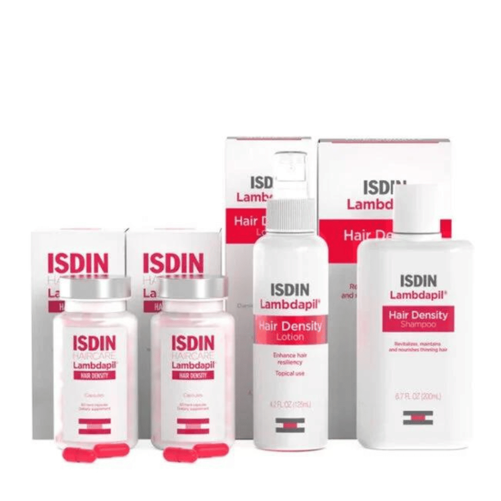 Revitalize and nourish thinning hair with this targeted product range designed to promote stronger, healthier hair. Save when bundling the complete three-step Lambdapil Hair Density system, which provides the essentials to give thinning hair new life with a lotion, shampoo, and a two-month supply of supplement capsules in each pack.Â